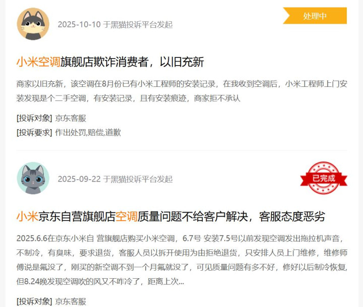 然而,进入2025年,家电领域的投诉情况并未好转,反而出现明显上升。其中,近年来在家电行业加速布局、销量快速增长的小米,更是成为投诉焦点,面临前所未有的舆论压力。